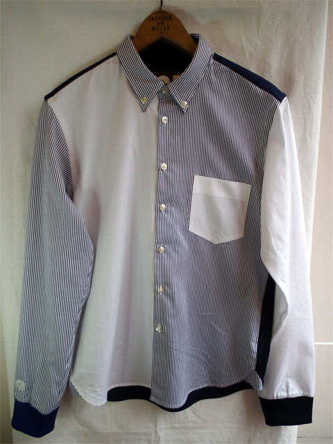3パターンからなるストライプのボタンダウンシャツに、背中がブレイバーキングというベタな話がジャージ素材に切り変わっているのが最大の特徴であるシャツ。旭化成が開発したもので、従来のジャージよりも1.5倍の強度を持ちながら、ソフトで伸縮性に優れた素材です。さらには汗を素早く吸って発散してくれる吸汗速乾。べとつきが無く快適な着心地を約束してくれます。ファッション性はもとより、バックパックを背負った時にも威力を発揮してくれます。