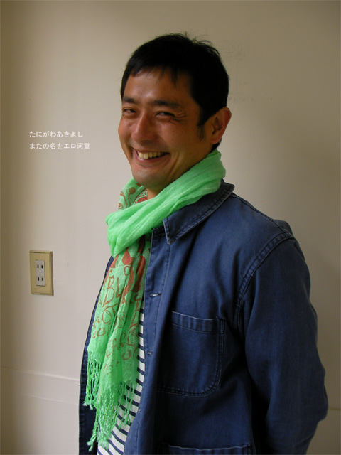 さて今回ご紹介のストール(巻き物)は、Tシャツにプリントしてるものをそのままストールに応用したモノ。世の中なんでもアイデアやね~。こりゃなんとも可愛らしいじゃあ~りませんか。ストールは非常に便利なシロモノでございます。ワタクシのコーディネイトに花を咲かせてくれるアイテムとして、もはや欠かす事の出来ないものになりました。首に巻き物をするだけで体感温度は1~2度はあがります。実は首に巻き物をするというのはとても合理的であることをご存知でしょうか。首の付け根の約3cmほど下に風門というツボがございましてな。ここを温めておくと風邪を引かんそうじゃよ。風邪の引きはじめにゾクっとするのは、この風門から邪気が入り込みよるからやと言われておるそうな。まだ朝晩は寒いから油断したらあきまへんでぇ。
