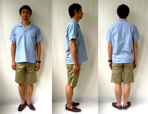 ハケメという夏にぴったりの素材。襟型ビューティフル。ポケットワンダフル。裾のスリットファンタスティック~!なんだか訳分かんなくなって来ちゃったよ。でもひとつ言える事は夏には涼しいってコト!お洒落で可愛く着こなしちゃってください。な~に、いつもの格好でイイんですよ。そこのお父さん。奇を衒(てら)う必要は全くもってナンセンス~。