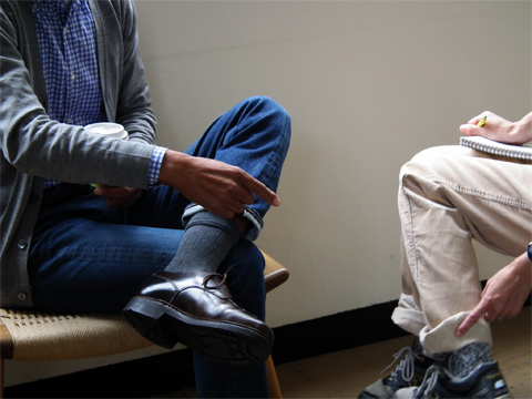 『ハヤシさんが穿くコーデュロイのジーパン姿、見てみたいのですが・・・』 ワガママを聞いていただきました、とある日の朝。 【ベージュ】 Double Tree(ダブルツリー) Corduroy Jeans(コーデュロイ ジーンズ)  カラー:ベージュ  サイズ:29、30、31、32、33、34、36  プライス:¥13,650- 【ネイビー】 Double Tree(ダブルツリー) Corduroy Jeans(コーデュロイ ジーンズ)  カラー:ネイビー  サイズ:29、30、31、32、33、34、36  プライス:¥13,650- 【グレー】 Double Tree(ダブルツリー) Corduroy Jeans(コーデュロイ ジーンズ)  カラー:グレー  サイズ:29、30、31、32、33、34、36  プライス:¥13,650- 無事に撮影終了。誰よりも今日の朝を満喫させていただきましたワタシ☆ マエダ(以下M) : 「今日は本当におおきにでした。やっぱりポイントは『丈(レングス)』ですかね?」 ハヤシ師匠(以下H) : 「(そんなん決まってる。笑)っていうか、全体のバランスやな。たとえば。。。短めのレングスから見えるソックス。それに続く靴・・・。色のバランス。ソックスが見える部分のバランス。それを感じる全体のバランス。」 M : 「シュッとしたラインがカッコええパンツ。でもいろいろな体型の方がいてはりますよね。オススメのコーディネートってありますか?」 H : 「そんなん、穿いてみんとわからんで。店に鏡あるやろ。それ見なアカンで。ほんで気になったもんかたっぱしから、穿いてみたらええんや。体型?そんなん本人が思ってるほど周りは気にしてへんで。それよりも自分の好きなバランスをイロイロと試してみたらエエんや。失敗を恐れず、何事も経験。イロイロと試して自分のバランスを探すのが、楽しいやん!」 M : 「師匠の一番のオススメカラーは、何色?」 H : 「ベージュにも、ネイビーにも、グレーにも、それぞれ合わせたいもんあるなァ。3本ともや!3本ともいっといてや!!(笑)」 M : 「裾上げはやっぱりチェーンステッチ?」 H : 「そやな。間違いないわ。でも、ドレスパンツみたいにすくい上げにしてもエエな。また雰囲気変わってエエで。」 M : 「お洗濯の時に、よう乾燥機をつかわはるってブログで拝見しましたの。」 H : 「ふつうでエエんちゃうか(笑) 乾燥機つこてるのんは、ジーパンとポロシャツやな。」 M : 「このコーデュロイパンツを試着したお客さまより、肌なじみがエエなァって声をよう聞きますの。」 H : 「綿100ちごて、TC(テトロンコットン)はいっとるからな。そのせいとちゃうか?へたらんしな。ジーパンと一緒や!!」 M : 「林さんのワードローブって、どんな感じなんでしょう?」 H : 「男モンゆうたら、しれたるやろ。シャツにセーターにパンツに靴。あともちろんジーパンやで! たとえばシャツゆうても、袖の細さや襟の大きさやら、シーズンごとに変化があるやろ。生地感はエエけど、袖が太いなァとおもたら、やっぱり新しいのん探しにいくわな。アイテムは決まってても、毎年毎年、また新たな一枚がいるんや。 いっぱい試して、中にはちごてるのもあったけどな。 いろいろ試す中で、やっぱりエエもんはエエてわかったり、ラインやったり色目やったり、自分の好みがかたまってくる。 いろいろ試さなアカンで!!」 いつお会いしても、紳士でカッコ良くって、いい匂いがする(笑)、ハヤシさんです。 自分の持ってる引き出しの中味と、新しく仲間入りするもの。 服を楽しむ気持ち。ワクワクと選ぶ喜び。 自分のいつもを、より素敵にする洋服との関係を自分なりに楽しむこと。 その人なりのバランスをみつけたら、気持ちの流れが一新されたり、さらに盛り上がったり。 楽しくなる。 イロイロなことを、感じさせて下さった林さんに、感謝致します。ありがとうございました。 さて皆様、ZABOUにきて、イロイロいろいろ。。。お試しくださいな☆ Double Tree(ダブルツリー) Corduroy jeans(コーデュロイ・ジーンズ)が気になった! ☆とりあえず試着しに行く→ZABOU のお店 ☆もう少し詳しく見てみる→ZABOU WEB SHOP 最新情報満載のZABOU facebook(フェイスブック)はこちらから。 色んなコーディネートが見たい!Instagramはこちらから。