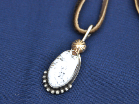 北米で生活しているインディアンの方たち。 ナバホ、ホピ、ズニなどなど数々の部族がございます。 彼らが作るアクセサリー、インディアンジュエリーには作り手の思い、願いがこもっておりハンドメイドの暖かさがすごく伝わってきます。 さらに絞って、ナバホ族の中でも長年のキャリアを持つアーティストが手掛けるインディアンジュエリーブランド、white buffalo(ホワイトバッファロー)。 使われている白い天然石、ホワイトバッファロー。ブランド名もそこからきております。 アメリカ ネバタ州でターコイズとともに採掘されるホワイトバッファロー。採れる量は少なく、とても貴重な石です。 インディアンの間では奇跡を起こすパワーがあると言われており、古くより大切に扱われております。 シルバー部分に施されるハンドワークによる細かいスタンプにも、一つ一つ意味やメッセージが込められています。 ZABOUでもぼちぼち定着しつつあるこちら。 そんなスペシャルなブランドより新作の入荷がありましたのでご紹介。 今日はリングとネックレスをどうぞ。 【リング】 僕もリングは毎日愛用しております。 ファッションとしてもいいアクセントになり、一つの作品として見ても、なんだかとてもわくわくします。 、、、外にいる時はないと寂しくて少し落ち着かないです(笑)。 店頭にはワンサイズのみの展開ですが、気に入れば一からお作りいただけますよ。 デコレイティブリング  サイズ:19号  プライス:¥30,450 ゴールドロゼッタリング  サイズ:¥17号  プライス:¥30,450 ホワイトバッファローリング  サイズ:19号  プライス:¥39,900 フェザーリング  サイズ:17号  プライス:¥21,000 【ネックレス】 ネックレスは普段まったくしませんが、嫌味のないデザインなので着けやすいです。   僕はウェッソンに付けましたが、ワイルドに素肌にシャツの上からなんてのもアリですね。 長さは紐である程度調節可能です。 ナバホスタイルチャームネックレス  プライス:¥25,200 プレーンベゼルネックレス  プライス:¥29,400 いや~どれもいいですね~。 天然石なので一つ一つ石の表情が違うのもポイントです。 巡り合いでございます。 それでは今日はここまで。続きはまた明日ご紹介させていただきます。 お見逃しなく~。 気になる方は『ZABOUのお店』または『ZABOU WEB SHOP』までどうぞ。