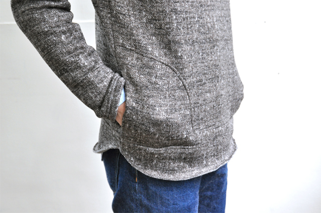 表地はヘリンボーン。裏地は肌触りよしの暖かフリースになっており、スウェット感覚でお使いいただけると思います。