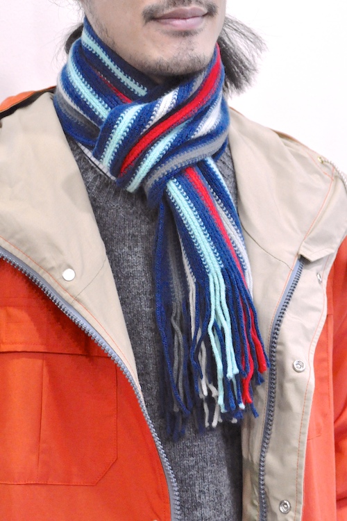 本日は『DINARIQUE(ディナリーク) ボーダーニットマフラー』をご紹介致します。この色使い、たまりません。