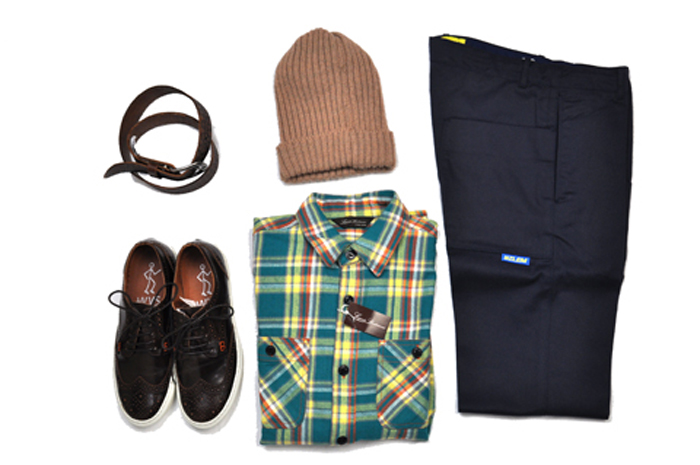 ●シャツ Loquat Sportswear(ロクワット・スポーツウェア) NEL SHIRTS(ネルシャツ) グリーン/イエロー 定価¥7,245-の50%OFF⇒¥3,622-