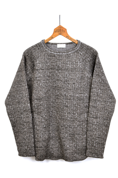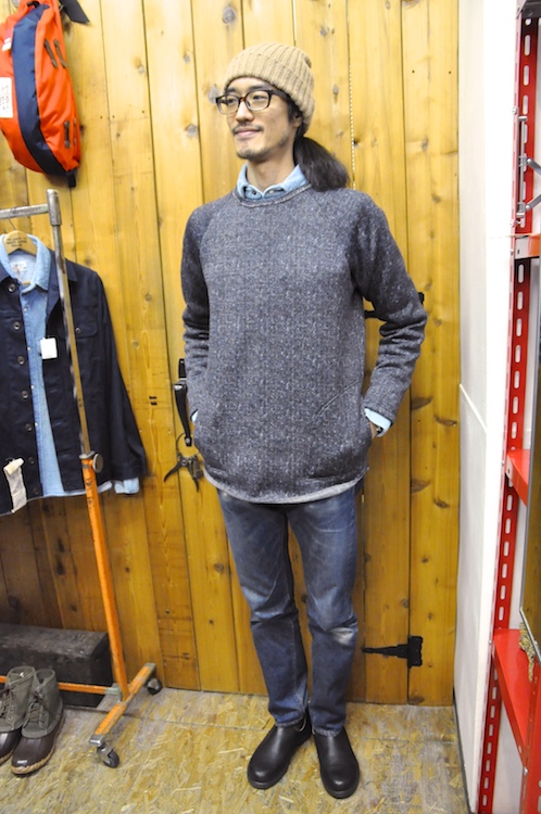 冗談はそのくらいにしておいて、人気のセーターフリースが再入荷でございます。見た目はヘリンボーン柄のニットの様、しかし実は軽くて暖かいフリース素材。そのシンプルなクルーネックに、便利なハンドポケットを付けてデザインのアクセントにした、スピナーベイトさんらしい、シンプルな服。お洗濯が簡単なのもポイントが高い!ご家庭の洗濯機で普通に洗えます。