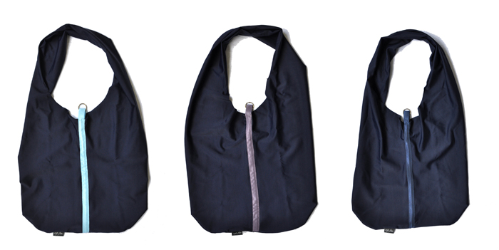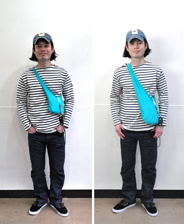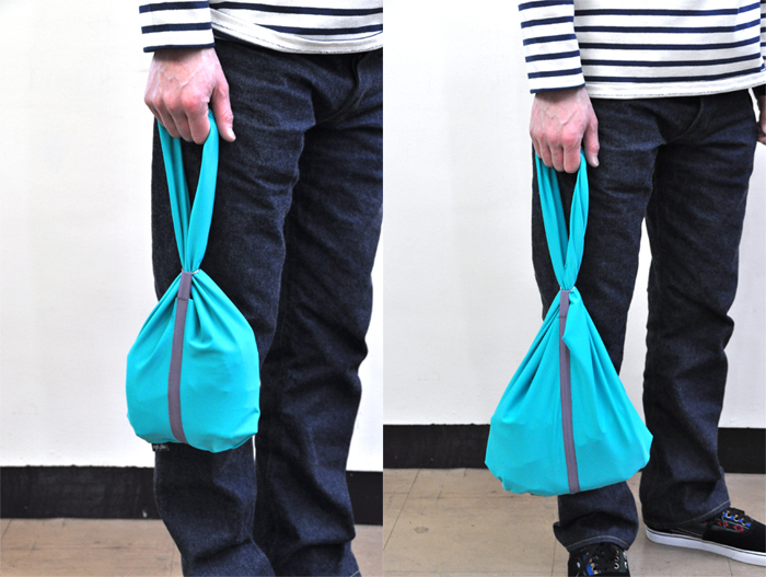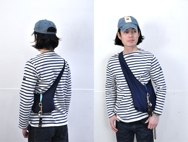 タスキ掛けから肩掛け、中央のナイロンテープ先端のOリングに持ち手を通すと巾着に、そしてウエストに付けて頂いてもOKです!