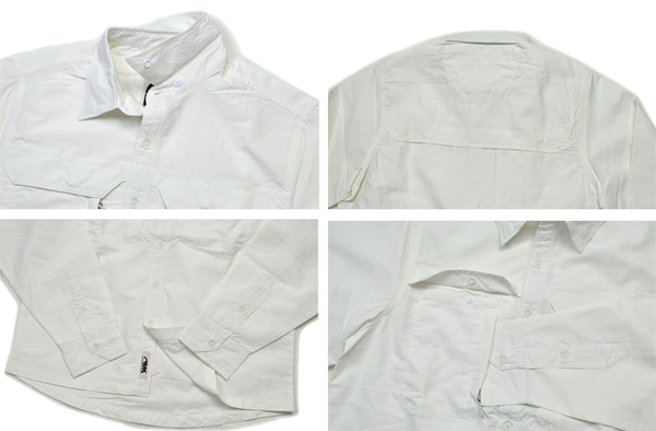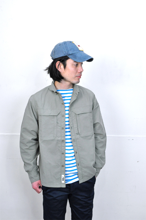 本日ご紹介のこのシャツは、MOUNTAIN KHAKIS(マウンテンカーキ)というアメリカのアウトドアブランドのもの。撥水性だったり、軽量であったり、紫外線から守ってくれたり。ベンチレーション機能だってきちんとある。ぼくたちが重要視してるのは、その機能性が機能美となりデザイン性の高さが面白い事。ファッションだけのユルいところからは実現しにくい、そんな本格アウトドアブランドのある意味野暮ったいくらいのところがいいんです。