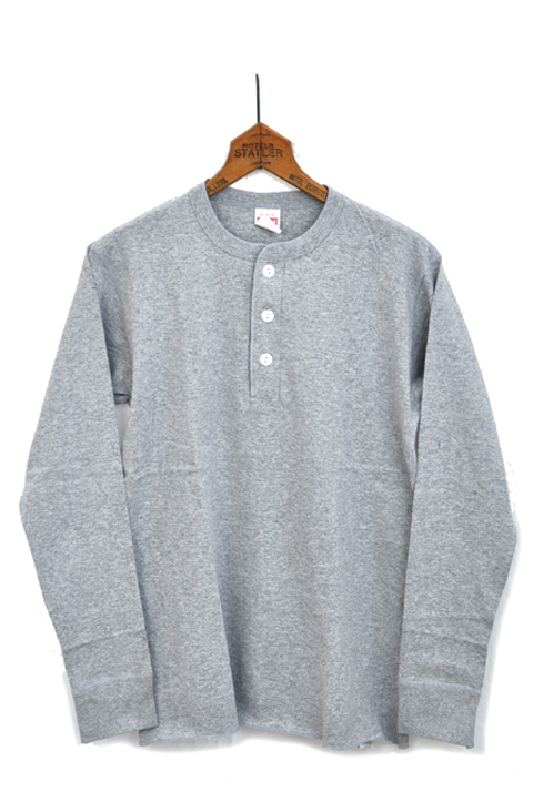 Healthknit(ヘルスニット) 3つボタンヘンリーネック長袖Tシャツ カラー:ヘザーグレー サイズ:M、L、LX プライス:¥4,095-