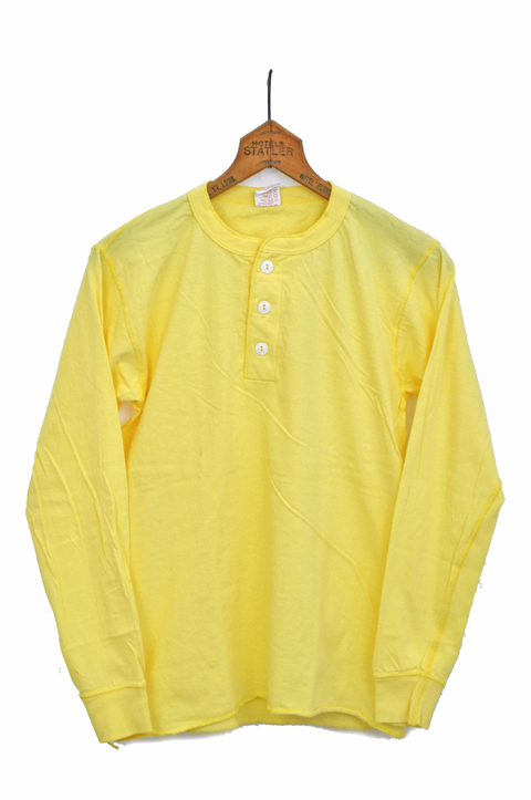 Healthknit(ヘルスニット) 3つボタンヘンリーネック長袖Tシャツ カラー:ライトイエロー サイズ:M、L、LX プライス:¥4,095-