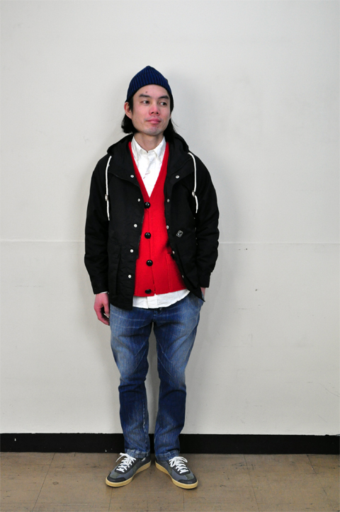 目や鼻がムズムズし出すとウールからコットンへ衣替えの合図でございます。最近は専らSaint James(セントジェームス)のウエッソンでございます。ボタンダウンシャツと重ね着する「セントジュームスonシャツ」が鉄板スタイルでございます。アウターはと申しますとやっぱりナイロン物を選んじゃうんですよね。突然の雨でも気にならない安心感があるんですわ。