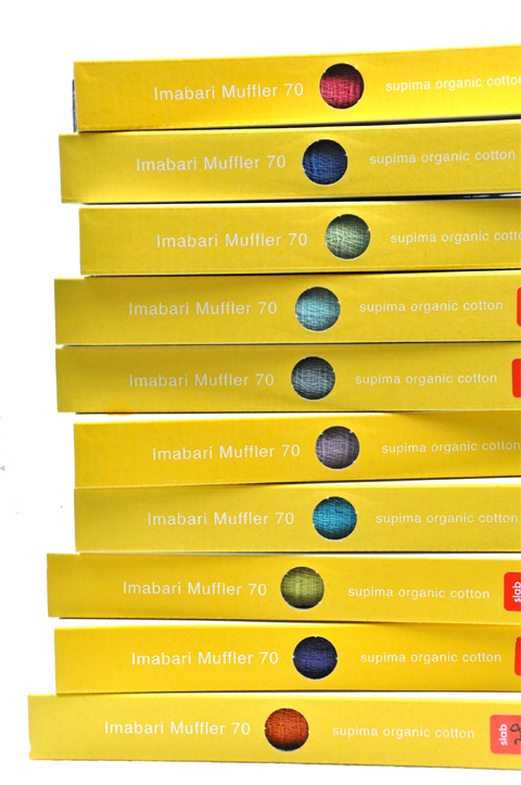 ●みやざきタオル いまばりマフラー70 カラー:藍色、青ねずみ、あさぎ、かき色、都わすれ、水色、おみなえし、ローズ、若竹 プライス:¥1,365-