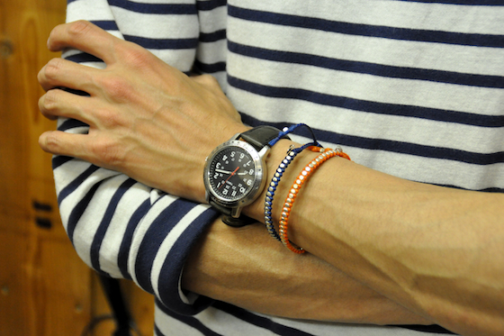 いよいよ日差しが強くなってきました。朝の窓際が暑い。本格的に季節は変わりますね。今年もたくさん外へ出かけて、自然に日焼けしたいなと考えています。  毎年言われる事ですが、服装が軽くなるとアクセサリーが気になります。  本日はちょっと変わり種、『TAI(タイ) ハンドメイドブレスレット』をご紹介致します。 taibrace1TAI(タイ) ハンドメイドブレスレット S  カラー:イエロー、レッド、ダークブラウン、ネイビー、グレー、ライトブラウン、オレンジ、ブラック、グリーン  プライス:¥6,195- taibrace3TAI(タイ) ハンドメイドブレスレット M  カラー:イエロー、レッド、ダークブラウン、ネイビー、グレー、ライトブラウン、オレンジ、ブラック、グリーン  プライス:¥7,875-  見るからにハンドメイドでございます。タイ出身のデザイナーが、アメリカ西海岸はサンタモニカにて、せっせと手作りで作り上げているブレスレット。シルバーや、シルバーゴールドメッキのビーズを巧みに使い、なんとも独創的なアクセサリーに仕上がっています。 taibrace2 (1) taibrace4 (1)  なんとも春らしくてカラフル。もし今他にアクセサリーをしていたら、アクセサリーも衣替えの季節ですね。ふだん身に付けない方でも、ハンドメイドのものでしたら結構自然に取り入れる事が出来ます。     二つ重ねて付けたり。 taibrace5 008  他のアクセサリーとのコーディネートを楽しんだり。 taibrace6 009  僕はこういう時、真っ先にブルーを探してしまいますが(笑)、他の色も大変魅力的です。皆さんのお気に召すお色はありますでしょうか?是非、お試し下さいませ。 ハンドメイドのブレスレット、良いかも! ☆早速お店に行く!ZABOUのお店 ☆ウェブで詳しく見てみる!ZABOU WEB SHOP