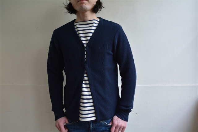 こんばんはホッタです。春物がゆっくりと、じわじわと入荷してきております。立ち上がりはナウンの服からでございました。  このブランド、本当に不思議です。この分かりにくい格好良さはなんなのでしょうか。僕の場合、学生時代よりバイトなどで貸し出されて着ていた工場勤務用のワークウェアなど、強い憧れを持っていましたので、この辺がナウンの美学とリンクするのではないかと思っております。  かと思えば、上品なニットやシャツもナウンは得意としております。あっさりと薄味なのにしっかりと余韻が残り、また欲しくなってしまう、そんな服ばかり。あからさまにファッションをしていると表に見せたくない私どものような天の邪鬼は、黙って手が伸びてしまうのでございます。  さて、本日は『N.O.UN(ナウン) CARDIGAN(カーディガン) 15S』のご紹介です。 nouncardigan15s1N.O.UN(ナウン) CARDIGAN(カーディガン) 15S ¥15,984-  柔らかでコシのあるコットン×リネン素材のニットカーディガン。立体的なワッフル編みで、袖はリブでスッキリとさせながら裾はあえてリブ編みにせず、ストンと落ちる変化のあるシルエット。何より目を引くのはフロントがボタンではなく、隠れるようにフックが二つだけあるところ。外見からは付属部品がまったく見えず、ニットをまとっているかのようです。  こちらもやはり、キチンとして見えるのにリラックスできる、そんなところが魅力でしょうか。 noun-cardigan-chaku1 noun-cardigan-chaku2 noun-cardigan-chaku3 noun-cardigan-chaku4○ニットキャップ Bello(ベッロ) MILITARY WATCH ¥4,104- ○カーディガン N.O.UN(ナウン) CARDIGAN(カーディガン) 15S サイズ:M ¥15,984- ○カットソー Saint James(セントジェームス) ウエッソン「ガシガシ」 ECRU×MARINE(生成り×マリン) サイズ:T4 ¥10,800- ○パンツ JAPAN BLUE JEANS(ジャパンブルージーンズ) ANKLE CUT SLIM TAPERED STRETCH JEANS ユーズド サイズ:30 ¥14,040- ○スニーカー New Balance M1300 身長171cm 体重58kg 足26.5cm  普通だけど、変化球なカーディガン。お試し下さいませ。 N.O.UN(ナウン) CARDIGAN(カーディガン) 15Sいいね! ☆お店に行く!→ZABOUのお店 ☆ネットで詳しく見る→ZABOU WEB SHOP    最新情報満載のZABOU facebook(フェイスブック)はこちらから。 写真で楽しむ!Instagramはこちらから。
