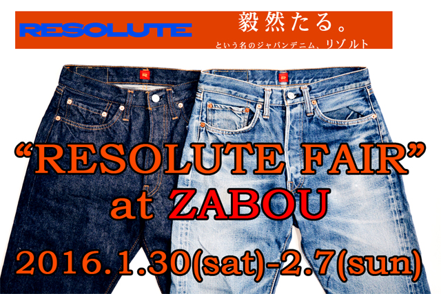 今年は1月30日(土)~2月7日(日)の期間で開催させて頂きます、『RESOLUTE(リゾルト) FAIR 2016 in ZABOU』。