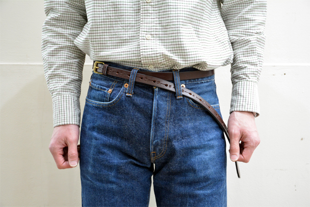 jabezclifflong10 jabezclifflong9 シンプルな英国製のレザーベルトも、こんな感じになればもっとグッとくる! 老舗ブランド『JABEZ CLIFF(ジャベツ・クリフ)』だからこそですよねー jabezclifflong1 左がいつものJABEZ CLIFF(ジャベツ・クリフ)。 右が今回のJABEZ CLIFF(ジャベツ・クリフ)。 長いです。 jabezclifflong2 バックルも小さく、細いです。 いつものと同じくの経年変化が楽しみなブライドルレザーを使用しています。はい。 いつものと違うのは細長いと言う事です。 穴が5個あるのがいつもの。 穴が20個もあるのが今回のもの。 リゾルトのジーンズが29インチの私は、 いつものJABEZ CLIFF(ジャベツ・クリフ)なら30インチで3番の穴に通します。 今回のは17番かしっかり留めると18番になる。 jabezclifflong6 真面目なブランドが行う遊びのあるデザインは、それだけで面白かったりします。 ビロ~ンと垂らして見せれるいい感じのレザーベルトって案外少ないから、コレおすすめですね! 長さはワンサイズなので、バックルの位置をずらして調整することで、ビロ~ンな感じをお好みでバランス取って下さい。 色もいつものJABEZ CLIFF(ジャベツ・クリフ)と同じく、 「タン」「ブラウン」「ブラック」の3色あります。 【タン】jabezclifflong3JABEZ CLIFF(ジャベツ・クリフ) Long Saddle LeatherBelt 20h  ¥14,904- 【ブラウン】jabezclifflong4JABEZ CLIFF(ジャベツ・クリフ) Long Saddle LeatherBelt 20h  ¥14,904- 【ブラック】jabezclifflong5JABEZ CLIFF(ジャベツ・クリフ) Long Saddle LeatherBelt 20h  ¥14,904- 私はブラックが気分です。 ルーズパンツにはもちろん… jabezclifflong7 細めのパンツにもカッコ良いです。 jabezclifflong8 ジェントルマンの皆さまもいろいろ試してみて下さい。 それでは今日はこの辺で。 明日のご来店もお待ちしてまーす! ☆お店に行く!→ZABOUのお店 ☆ネットで購入、もっと詳しく見る→ZABOU WEB SHOP 最新情報満載のZABOU facebook(フェイスブック)はこちらから。 色んなコーディネートが見たい!Instagramはこちらから。