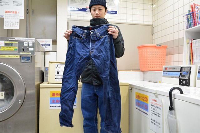 どうもです。瀬川です。 今月末に控えております。『RESOLUTE(リゾルト) FAIR 2016 in ZABOU』 ※終了しました。 初めてお求めになる方も既に複数本お持ちの方もいらっしゃるかと思います。 そんな日々たくさんの方に見ていただいているリゾルトのジーパンですが、ウエストやレングスのサイズ感というお問い合わせはもちろんのこと、他にもこんな問い合わせをいただいたりしております。 「ジーパンってどうやって洗ったらいいの?」 せっかく買った大事な一本、じっくり大切に穿いて育てていきたいですよね。 そこで、本日は実際に私物のリゾルトをコインランドリーで洗ってみたいと思います! では早速行ってみましょう。 おすすめとしては“よく洗うこと”。シンプルですがこれでございます。 穿き込むことによる“ヒゲ”や“アタリ”の為に洗うことを制限する方もいらっしゃるかと思います。ですがそれをしてしまうと、皮脂などの油分を含んだ汚れが付着したままになってしまい、生地がとても脆くなり破れの原因となってしまうのです。 もう一つは色落ち。リゾルトの良さの一つである綺麗なブルーデニムへの変化。これもあまり洗わずに放置しておくと黄色味がかったものになってしまいます。 洗う頻度も個人差はあると思いますが、僕の場合だと今みたいな冬の季節なら、一週間毎日穿いたとして最低一回は洗濯します。夏場なら穿く度にしております。 洗う際は、“ボタンを全て閉じて表向きのまま”洗濯機へ。表のままだと全体のアタリが出やすく、ボタンを閉じる事でそこの部分のアタリも出てきます。 逆にアタリを抑えたい、色落ちを少しでも防ぎたいという方でしたら裏返しにしてネットなどに入れてあげるといいですよ。 そうこうしている内に、コインランドリーに到着でございます。 ではここから実際にお洗濯を。 当たり前のことかもしれませんが、洗濯の際はしっかりと洗剤を使いましょう。 水やお湯だけだと皮脂は落ちないのであまり効果がありません。 使う洗剤は何でも大丈夫です。一般的な家庭用洗剤、おしゃれ着洗剤と呼ばれるような中性洗剤、デニム用の洗剤。 例えば、漂白剤が入っているものなら色は落ちやすいです。少し気を使うなら中性洗剤がおすすめですね。 洗濯を待っている間はクールにコーヒーを飲んでみたり、 体を鍛えておきましょう。 洗濯終了!お次は乾燥でございます。 乾燥機の使用はお好みで。中でジーパンが擦れるので、よりアタリを出していきたい方にはおすすめです。電気ではなく、コインランドリーのガス式乾燥機がより効果的。林さん曰く、インディゴのブルーがより綺麗に出るそう。 大体50分~1時間程回して上げると乾ききっております。 いつもは天日干しの僕ですが、今日は乾燥機を使います。ちなみに、天日干しの場合も洗いと同じく表のままで構いません。お日様の光をあててあげましょう。 無事乾燥も終え、仕上がりました! ボタンホール 耳のブリブリ 裾も。特別なことはしていませんがいい雰囲気になっているかと思います。 あくまで一例ではございますが、少しでも参考になれば幸いです。 長文になってしまいましたが、最終的には“あまり気にせず穿き込む”のがいいかと思います。元も子もありませんが(笑)。 たくさん穿いて、小まめに洗う。他の洋服と一緒ですね。それで十分にカッコ良くなるんです。 “たかがジーパン”とデザイナー林氏の言葉もあるように、気にせず穿くのが一番です。 一人一人穿き方が違うように経年変化も様々。是非自分だけの一本を育ててくださいね。 商品についてより詳しくはZABOU WEB SHOPよりどうぞ。 ⇒RESOLUTE(リゾルト) ワンウォッシュデニム 710 デニムパンツ W26~W34