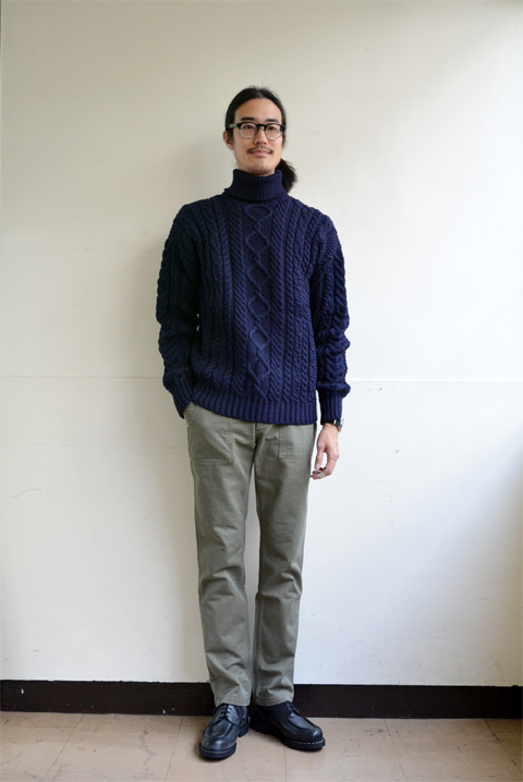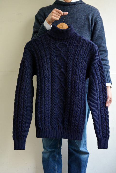 【GUERNSEY WOOLLENS(ガンジーウーレンズ) ARAN PATTERN TURTLE NECK ネイビー】