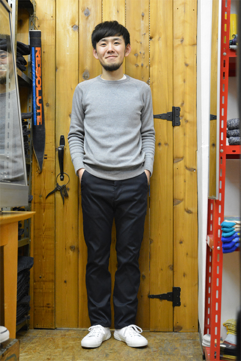 名前の通り、ポケットのジップがデザインのアクセントになっていてスポーティーな見た目。上質な生地が品よく光沢を与え、ハリとコシのある生地感。細身のシルエットながらもストレッチがきいているので着心地は快適です。どこか遊びのきいた洋服作りにナウンらしさを感じさせます。