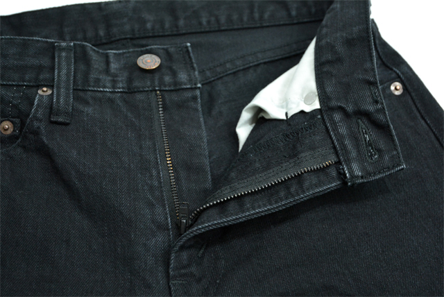 フロントのジッパーフライ、リベットやトップボタンも生地に馴染むような色をセレクトしたコダワリ。