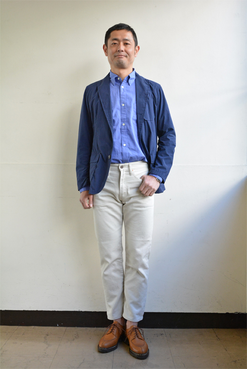 丈は是非短めでいかがでしょう。素足っぽくレザーシューズ、スニーカーと合わせて足元も幅広くお楽しみ頂けます。