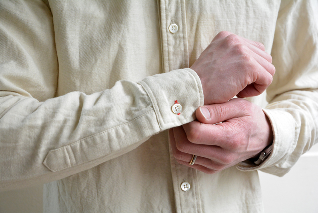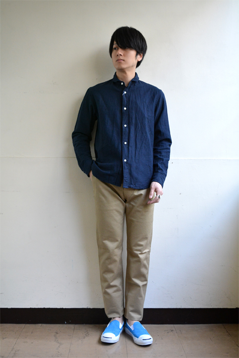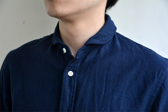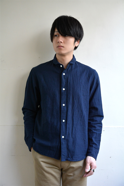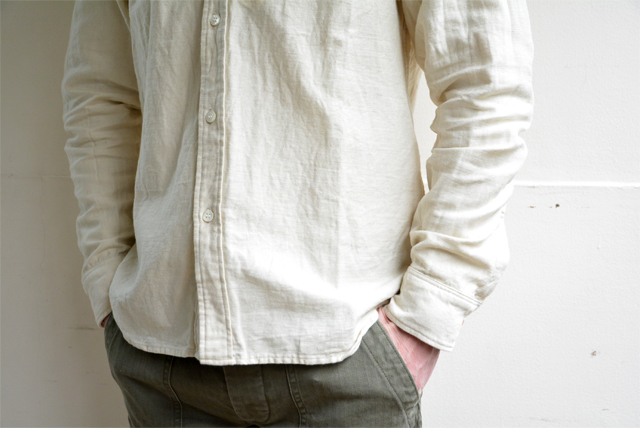 もちろん日本製で、シンプルでも縫製など、しっかりとした技術で縫われています。長く着られる服というのは、こういうものですね。ドアメカジなシャツではありませんので、一枚でさらっときて、柔らかい雰囲気が楽しめます。