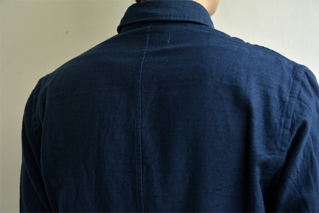 得意のセンターバック切り替えのパターンを使用しており、体がSの字に曲がる人間の骨格にあわせて、後ろの裾が浮きすぎないようなシルエットになっています。パッと見では分からない、隠れたディテールが職人気質を感じさせます。