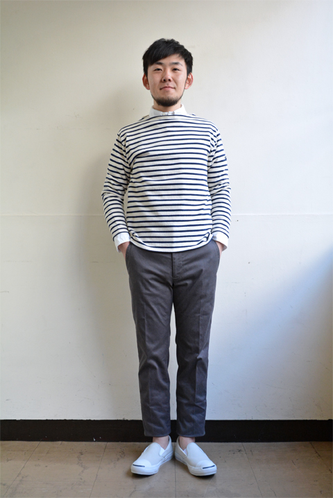 ジャケットを合わせたセミフォーマルスタイルから、シャツとセントジェームスを重ねてスニーカーを履いた、定番のザボウスタイル、革靴でカジュアルに合わせたアイビーライクなスタイルまで、大人っぽくも遊べるアイテム。