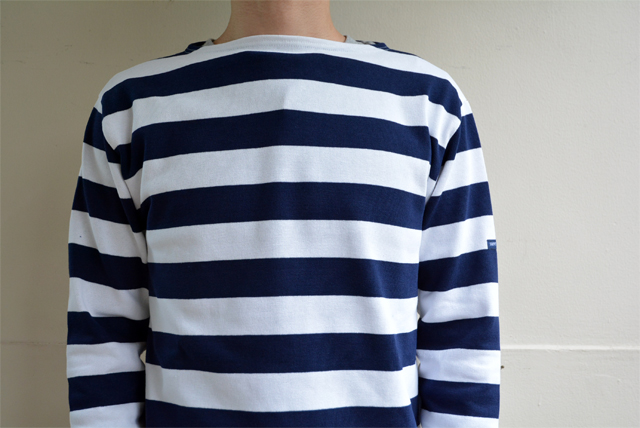 Saint James(セントジェームス)定番のウエッソンからいつもとは違う”太ボーダー”が入荷しました。どうやら久しぶりの復刻でなかなかレア物らしい。ピッチが変わるだけで印象も随分と変わっておもしろい。