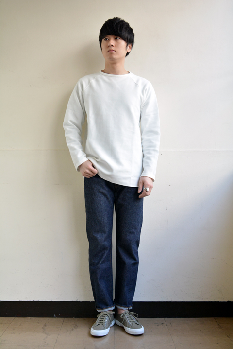 イタリアの老舗キャンパススニーカーも上質なリネン素材になるだけでグッと大人な顔に早変わり。シンプルにニットとジーンズのコーディネートが引き立ちますね。