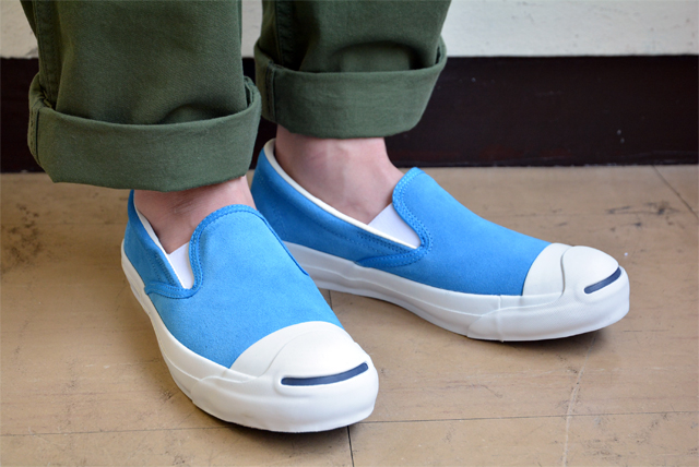 今シーズンは、コンバースの名品ジャックパーセルでもスリッポンタイプが特におすすめです。素足にロールアップしたパンツに合わせるのがZABOU流!