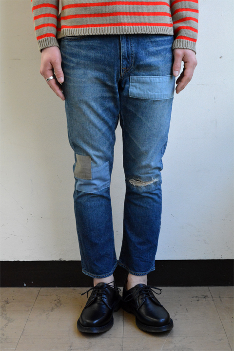 ヒッピーミリタリーと名付けられたこのパンツ。今が気分なヒッピーとミリタリ―スタイルを現代風に、裾が広がったフレアシルエットにクロップド丈。大胆なパッチワークとダメージ加工が雰囲気の良い一本に仕上がっています。シルエットは細身ながらもストレッチが効いているのでストレスなく快適な穿き心地です。