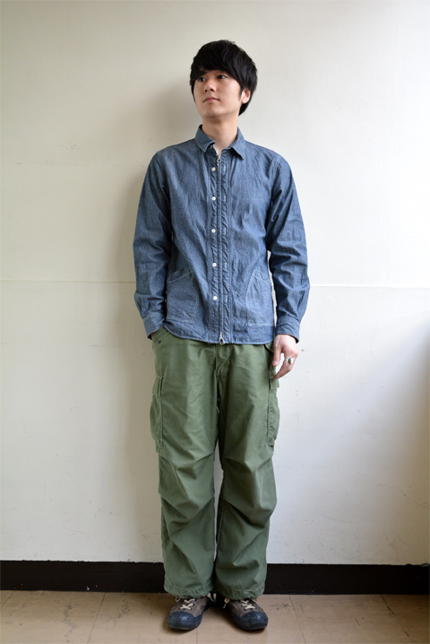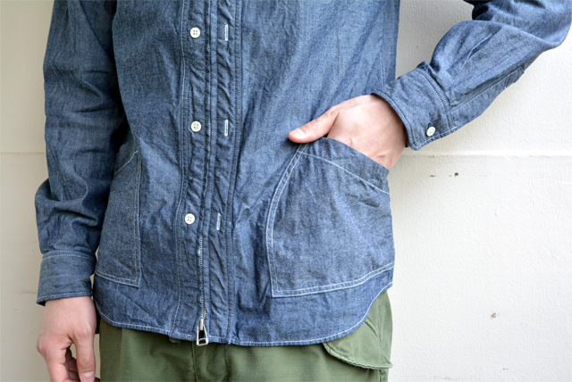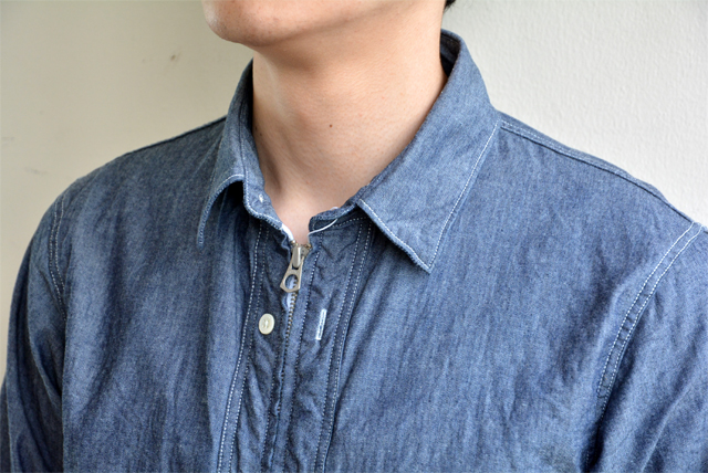 ジップで閉めてんのとボタン閉じてるのあるやん。そうです。大阪でシャツをメインに手掛けるブランド、weac.(ウィーク)のブランド創設からの定番『ZIP SHIRTS』。写真の通り、ジップでもボタンでも留めれる変化球なシャツ。そのためジップを閉めて着るのとボタンを留めて着るのとで身幅が変わり、着方もいろいろ。ジップならシャツジャケットのようにライトアウターとして。ボタン閉じてシャツとして活用。コレ一枚で二度おいしい。