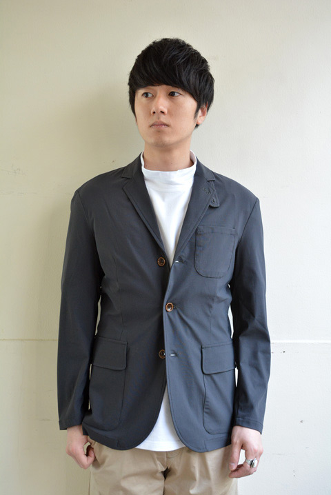 スリーパッチポケットにセンターベントとトラディショナルなディティールだからこそ素材の遊びが効いた大人のジャケット。もちろんシワが気にならないから常に携帯して頂く事をおすすめします!