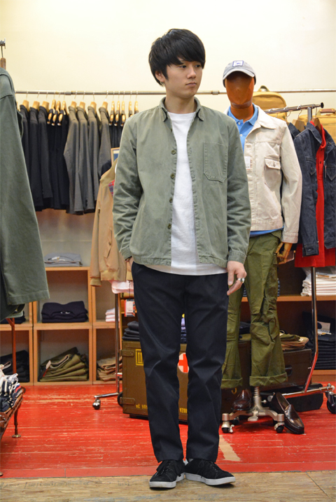 ワークジャケットにカットソーという普段のカジュアルスタイルにもよく合いますね。