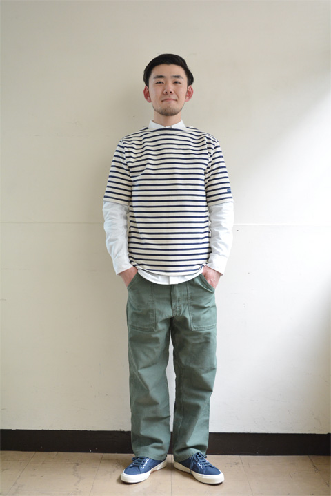 まだ、半袖1枚じゃさすがに寒いから、いつものように中にシャツ着てシャツonセントジェームス。長袖でも半袖でもこの着方が良いです。これなら今から着れますよ!