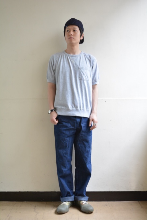 まるでスウェットを思わせるようなポケットTシャツでございます。