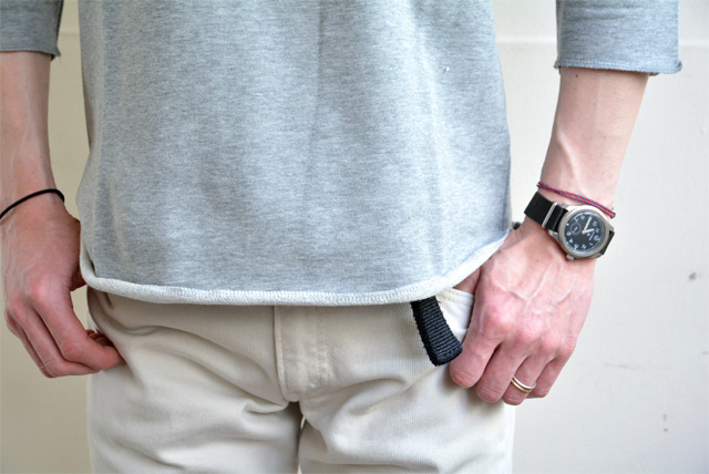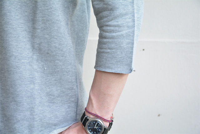 肌触りのいい裏毛、袖口と裾元がロック仕上げでゆる~い雰囲気。