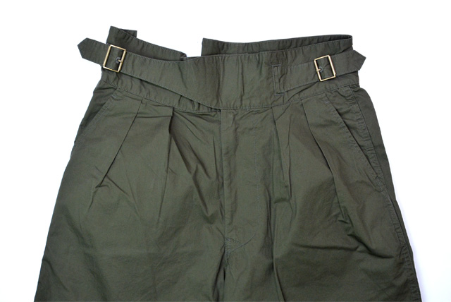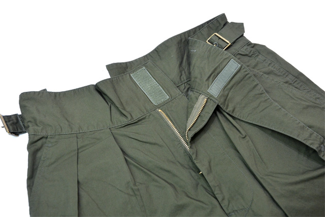 もともと、グルカパンツは“軍モノ”でございます。本来もう少しややこしい構造ですが、脱ぎ履きしやすいように改良されており、イージーパンツのような仕上がりでございます。