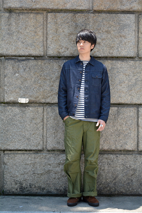 軍パンにGジャンというドアメカジなスタイルですが、少し大人っぽさがありますね。