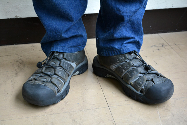 そういえば今日もワークパンツにサンダルの日だった。雨が降る日でもこれなら安心なんですよねー。KEEN(キーン)ならではのつま先保護機能も欠かせないポイント。