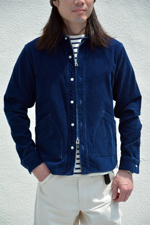 コーデュロイをインディゴ染めしてるのが良いです。今シーズンweac.(ウィーク)のテーマでもあるグレイッシュなカラーリング。着続けることによる色の変化がまさにそれでしょうか。個人的には古着のリーバイス501をネイビーなどに後染めしたものがなんだか気分で、このシャツにはその雰囲気(グレイッシュなカラーリング)を強く感じる。素直に良いですよね。これ。