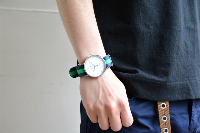 今、特に人気の高いNATOタイプのナイロンストライプベルトは、アメリカントラッドなアイビースタイルの印象を与えます。交換も簡単です。
