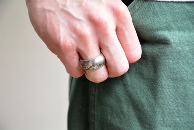NORTH WORKS(ノースワークス)を代表するアイテムのひとつでありぼくがこのブランドに魅せられたアイテムでもある。世界で最も美しいコインと言われるアメリカの旧1ドル硬貨(モーガンダラー)を使用したリング。より詳しくは、過去のザボブロ⇒「NORTH WORKS(ノースワークス) 2016」