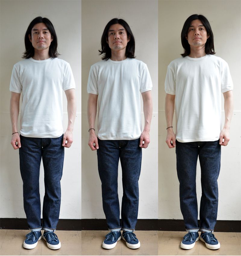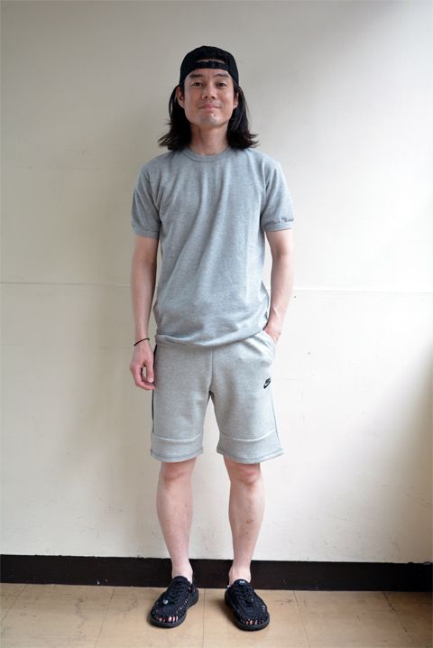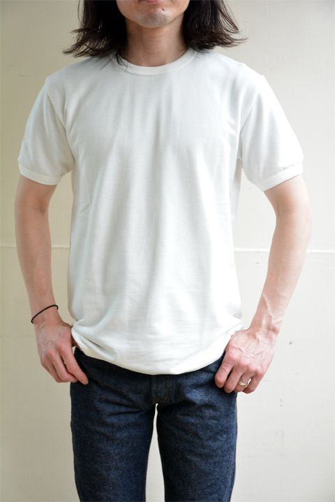 ただコレは「Cal Cru(カルクルー)」のとは違い、裏地がちょっとだけ起毛したミニ裏毛。おそらく皆様が想像する半袖スウェットのようなもの。Tシャツに比べたら生地に厚みがあり、セントジェームスのウエッソン半袖のような感じ。着る時期も同じかな。ちなみ今日はセントジェームスのウエッソン半袖を着ていて快適に一日を過ごす事が出来ました!(笑)