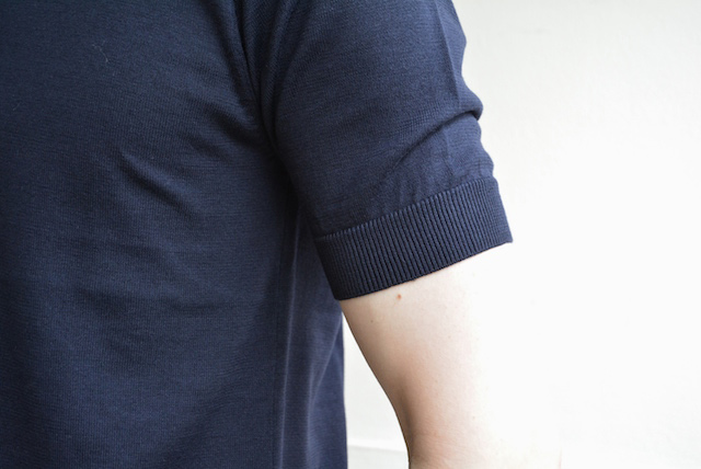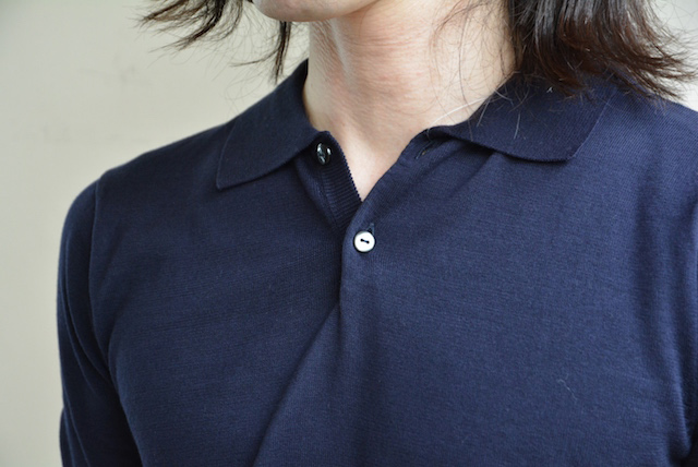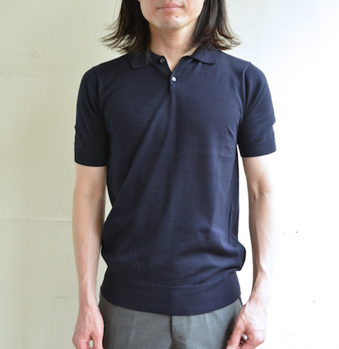 スーパーファインゲージのコットンニットポロシャツ。