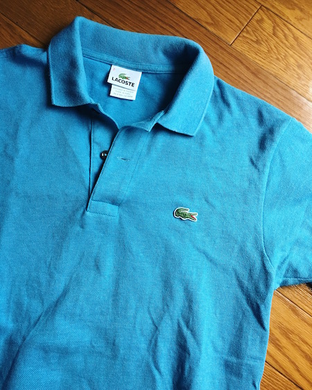 お気に入りのラコステのポロシャツ。三年くらい前に買ったもの。今はこの色は見当たらない。そういうのがよくて、ラコステは気に入った色があれば、その年のうちに必ず買おうと思っている。