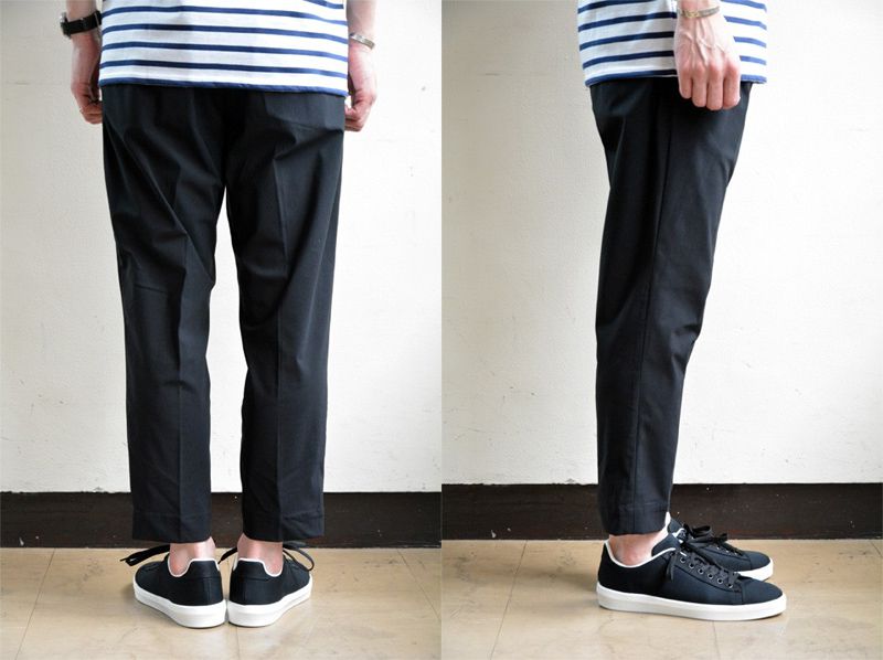 腰回りのルーズ感、クロップド丈のテーパードシルエット。