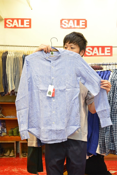 ●arbre(アルブル) フレンチリネンスタンドカラーシャツ ¥19,224-の30%OFF⇒¥13,456-