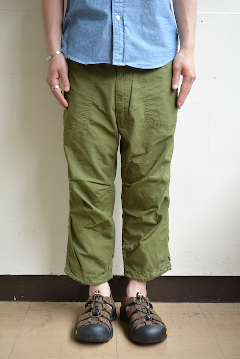 古着のような少しルーズめなシルエットが特徴のクロップド丈パンツ。生地は、リップストップ地なので薄手ながらも丈夫で耐久性に優れており、そこにストレッチをプラスして快適な穿き心地にしてあります。随所にミリタリーパンツのディテールが盛り込まれ男心くすぐるパンツに仕上がっています。
