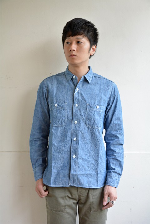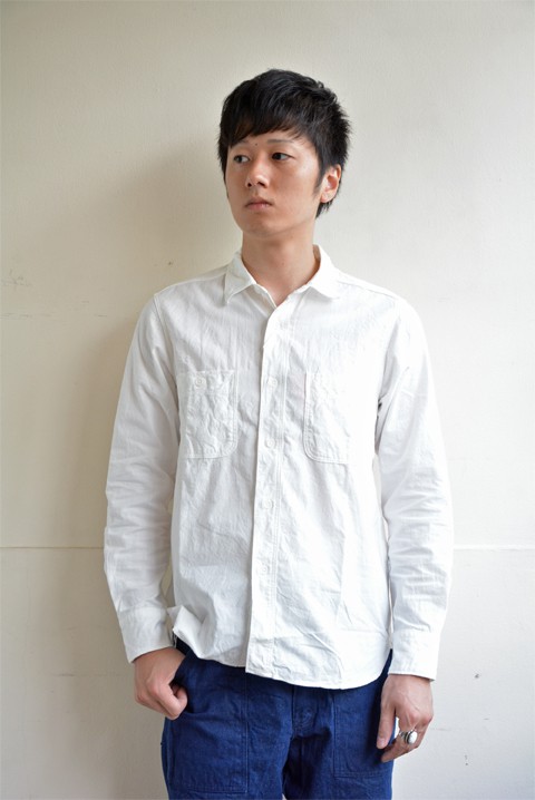 1940年代のワークシャツをベースに、シルエットを研究し現代風にモンダナイズしたワークシャツ。生地はオリジナルのオックス生地を使用。ヴィンテージシャツに見られるディティールも随所に盛り込まれており、細かなこだわりが感じられるワークシャツです。生地には凸凹とした素朴な表情やナチュラルなザラつきなど、綿本来の風合いを感じ取ることができ、着込んでからが楽しみにな一枚に。